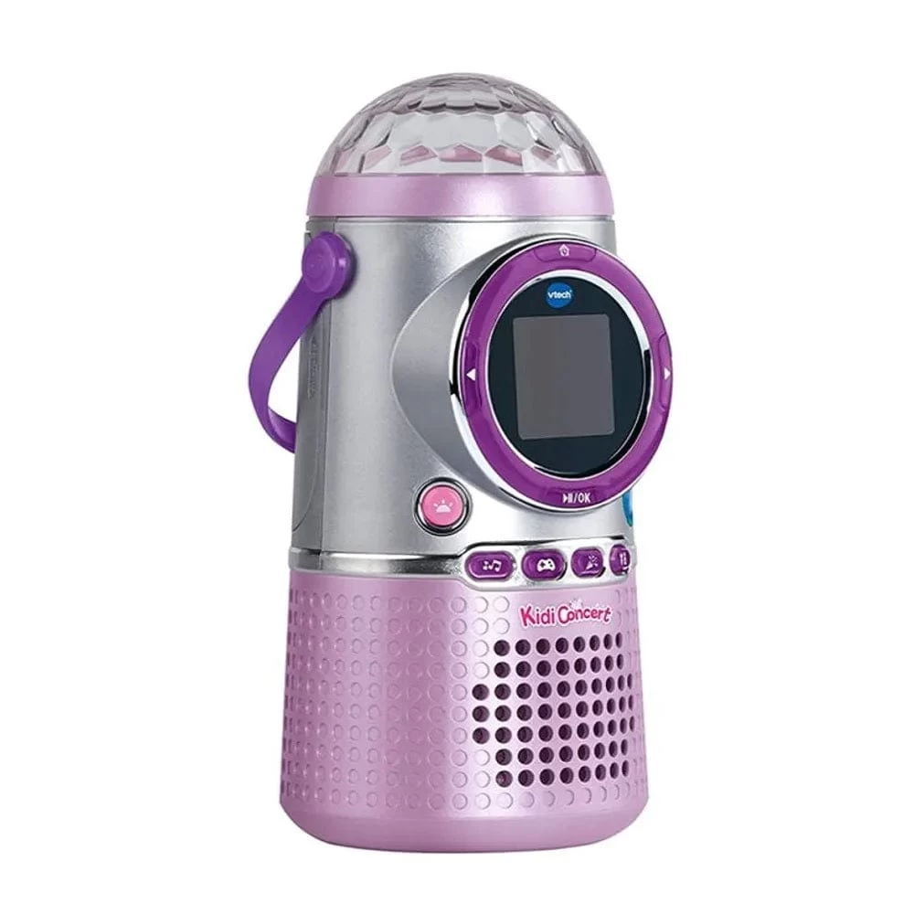 Kidi Concert is the Bluetooth speaker for kids! Connect your music player via Bluetooth or cable to hear your own music and press the light projector button to create your very own disco! Set the time and any alarms for parties you don’t want to miss. Play popular party games with your friends or listen to your favourite radio station or dance around the room to built-in dance songs and sing-along songs.