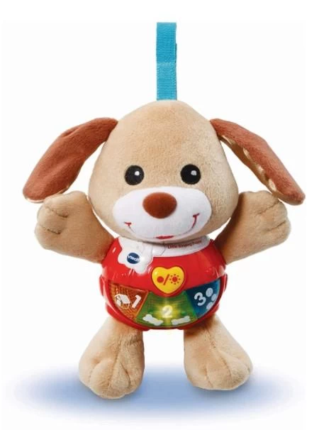 - MUSICAL TOY: This beautiful baby toy includes 3 lovely sing-along songs and 15 happy melodies with fun puppy sound effects add to the learning fun. This musical puppy is the perfect baby toy for making your baby laugh, learn and listen. Whether it’s to soothe your baby while in its cot or to play with while on a trip in the car or pram, there is a melody for all.