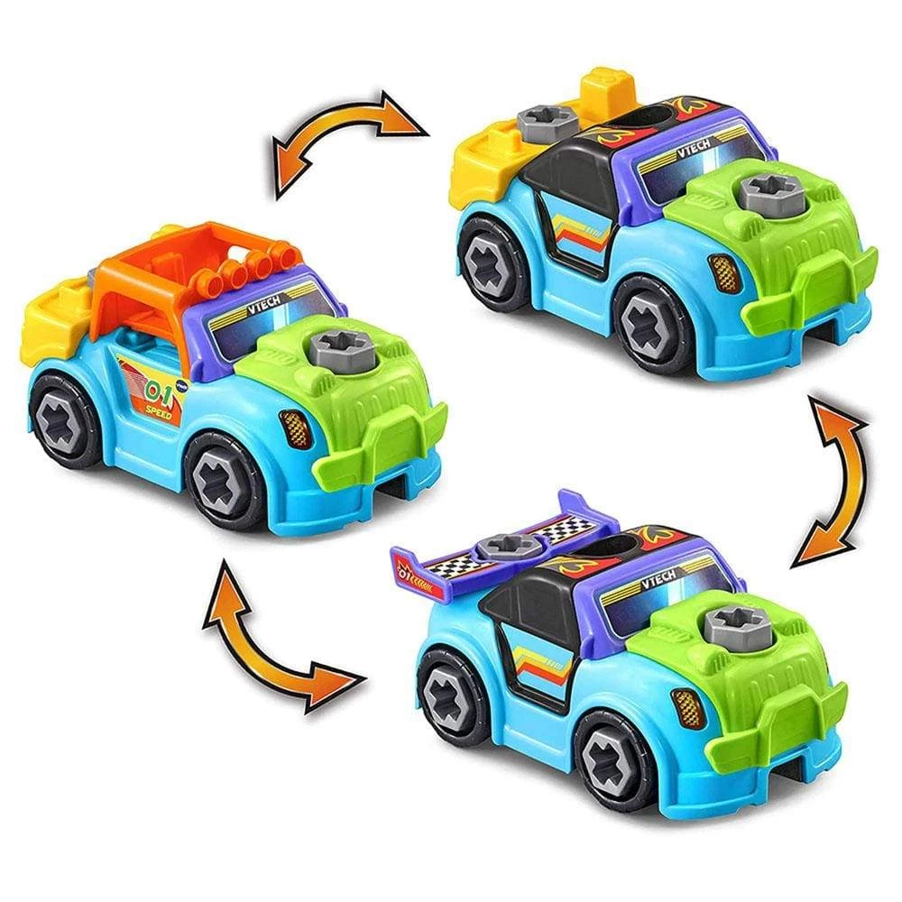 Customize a cool race car with the Repair and Race Truck! Learn about colors, car vocabulary, and road safety with the interactive tow truck and race car. The tow truck and car talk to each other like buddies while your child does repairs and customizes the car with 20+ accessories. Pick up the play screwdriver and screws to attach a hood, wheels, an engine, a roof, and a spoiler to make a cool race car! Create a custom car in Explore mode or switch gears to follow repair instructions in Challenge mode.